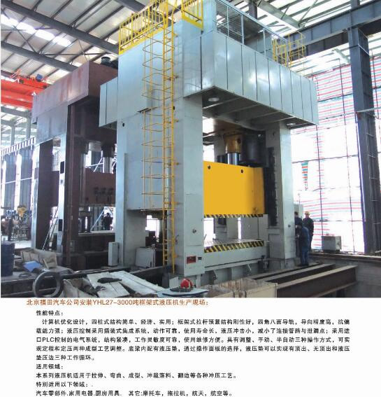 公司能夠?yàn)槭袌?chǎng)提供42大類500余個(gè)品種的標(biāo)準(zhǔn)液壓機(jī)和非標(biāo)專用、精密伺服液壓機(jī)。產(chǎn)品廣泛應(yīng)用于汽車(chē)、航天、粉末冶金、船舶、輕工、建筑、電子、家用電器等行業(yè),并代表著我國(guó)通用液壓機(jī)的發(fā)展水平。公司生產(chǎn)、設(shè)計(jì)、開(kāi)發(fā)的液壓機(jī)產(chǎn)品完全能夠滿足國(guó)內(nèi)不同用戶多層次的需要。